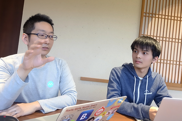 松木:開発体制のことをもう少し詳しく説明します。東京はビジネスメンバー中心で、プロダクトオーナーやセールス、セールスエンジニアという体制で、開発エンジニアは一人です。京都に他の開発メンバーがいます。