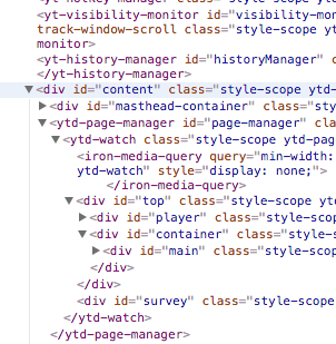YouTubeのHTMLソースを見てみると、確かにたくさんのカスタム要素を使っているのですが、Shadow DOMは使っていないんです。