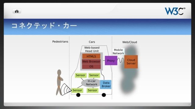 近年「コネクテッド・カー」というコンセプトで、インターネットに常時接続する自動車が開発されています。そうした中、Webの自動車における利用も具体的に検討されています。