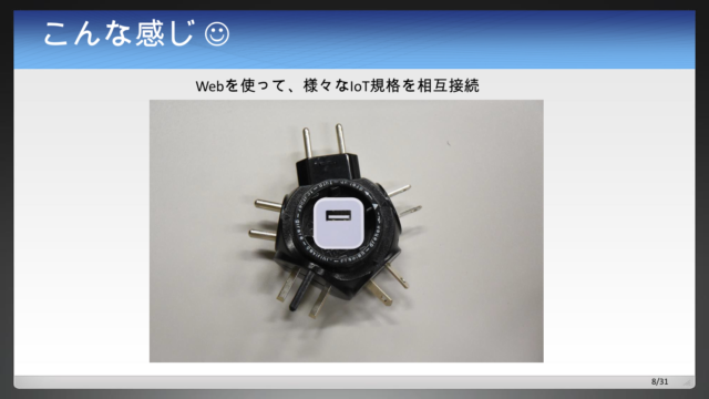 IoTデバイスは、既にWebに接続しています。しかし今はそれらの実装がバラバラ。 ただ実際に、それらを連携させたいというニーズは、ユーザーからも企業側からも出てきています。